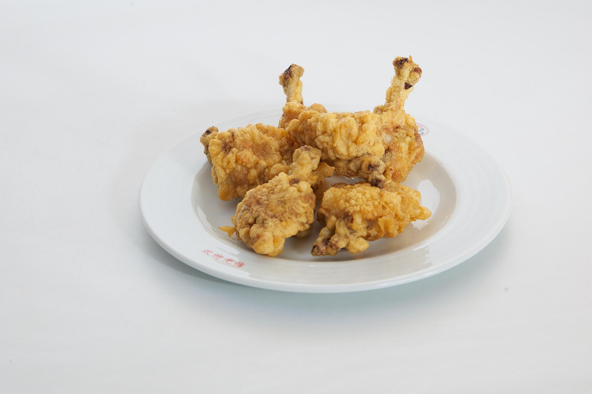 Smažené kuřecí kousky s bambusem a houbami, restovaná rýže, sladko-pálivá omáčka, 2ks závitky „Qing-Dao“, 2ks křupavé krevety