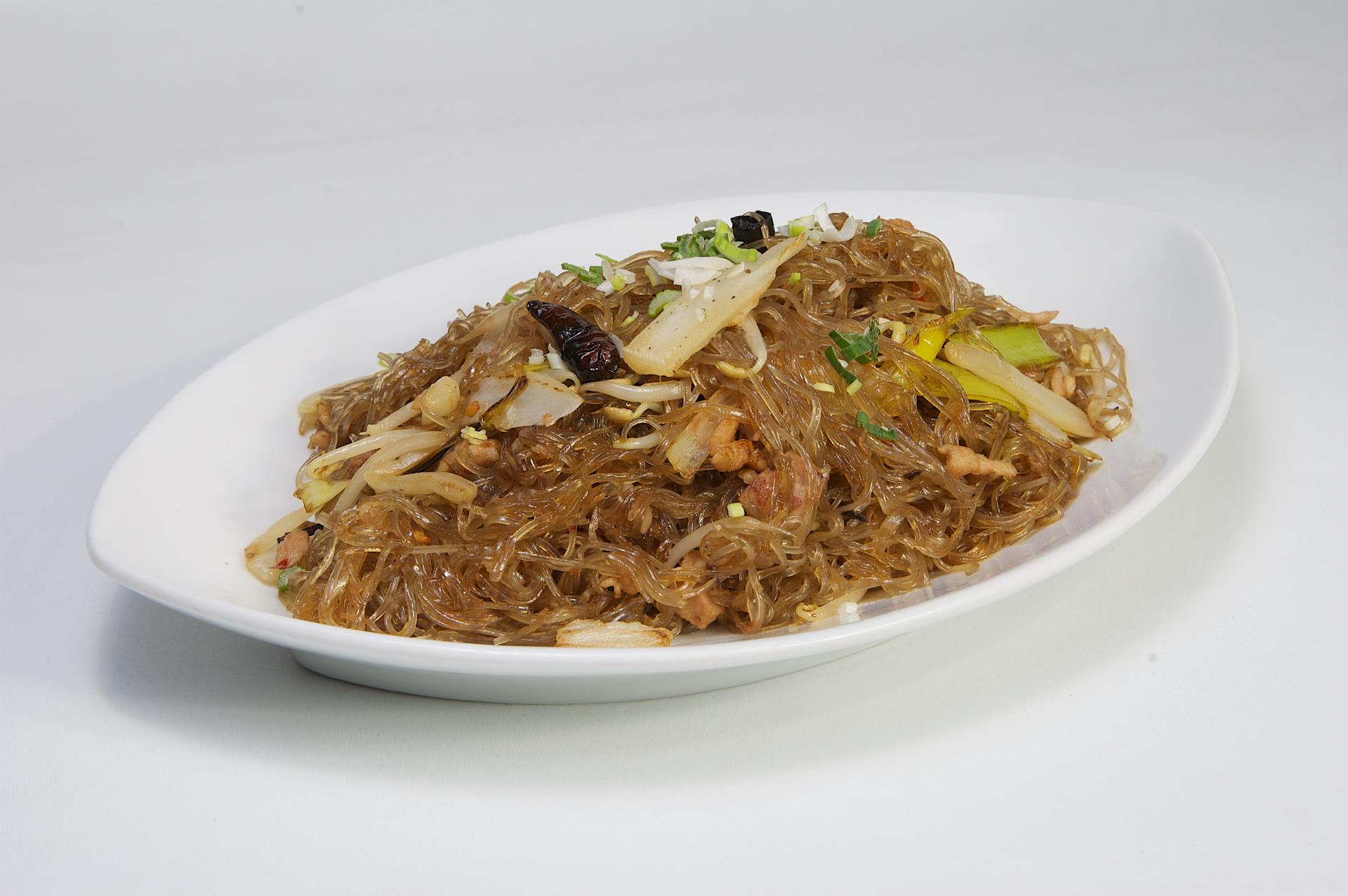 Restované vaječné nudle po Sečuánsku s vepřovým masem