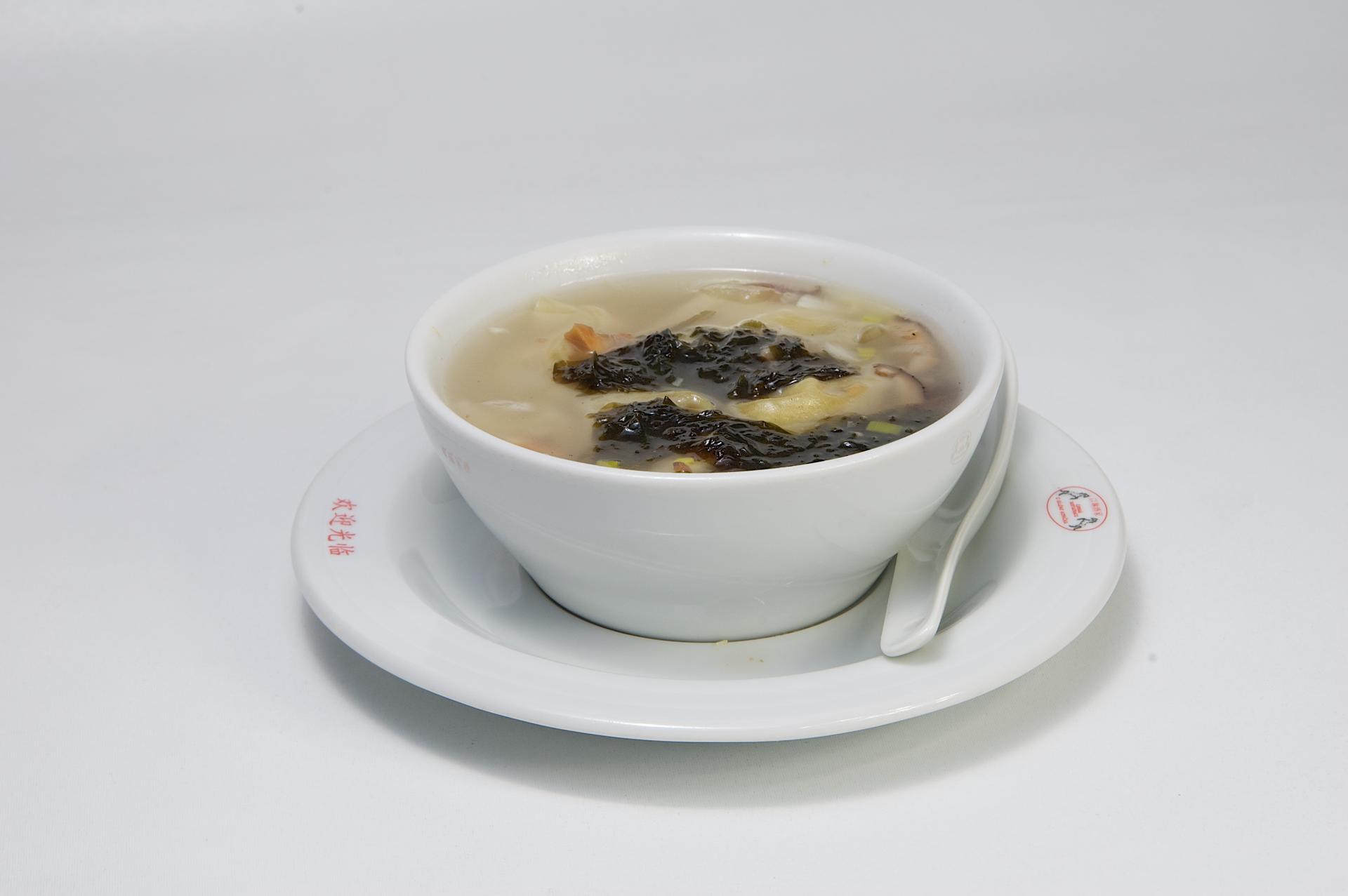 Kuřecí vývar s taštičkami "Yun Tun" a mořskými řasami