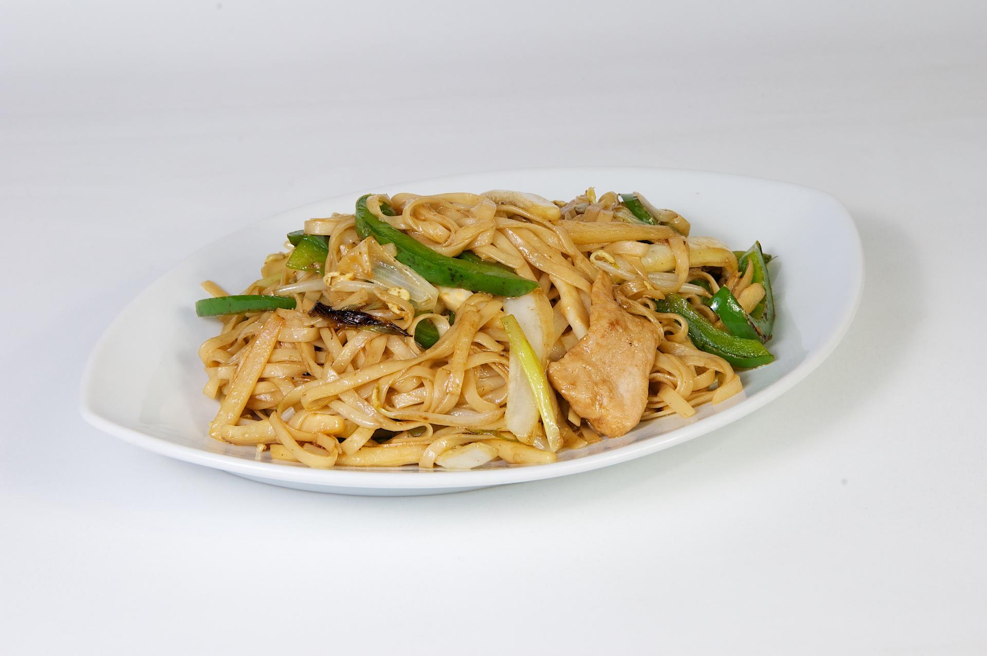 Restované rýžové nudle s kuřecím masem
